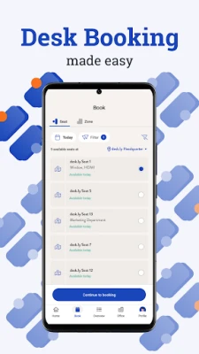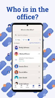 Intuitive workplace management for desk sharing and hybrid working teams: With desk.ly, you can book desks, meeting rooms, parking spaces and more with just a few clicks. Filters and AI-supported recommendations help you quickly find the right space. You can use the status to track who is working in the office or from home and where your teammates are sitting. This allows you to organize your collaboration even better. Companies gain insight into the actual office occupancy and are empowered to make data-based decisions for office optimization.