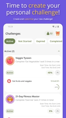 Track your progress right from your home screen! View individual habit completion status, challenge progress, and daily task completion at a glance with our customizable widgets.