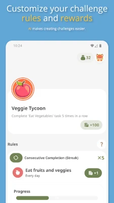 You can create challenges, like 6-day check-ins or completing a task 12 times. Get special badges for finishing challenges. Get extra points or rewards for each challenge. Show your badges in your profile to celebrate your achievements!