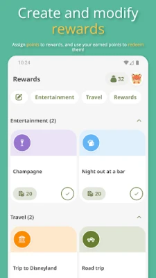 Set up and adjust rewards to keep you motivated. Assign points to rewards and use them to redeem them.