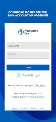 Download the free Washington Gas mobile app today to securely manage your payments, start or stop service, track your energy consumption, and more — all in one place. Enroll in programs like AutoPay, Budget Billing, Installment Plan, eBill and many more.