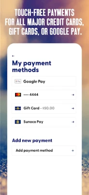 • Pay securely with whatever method you prefer. Easily link and unlink major credit cards, Sunoco Rewards credit card, debit cards, Sunoco gift cards, Sunoco Pay, Apple Pay, and Google Pay.