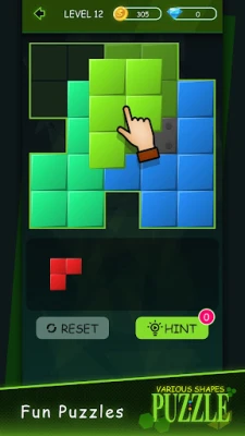 In the game, the grid is filled with blocks of various shapes. You just need to move your fingers to drag and drop them onto the screen grid, and move them repeatedly until you complete the grid and successfully pass the level.